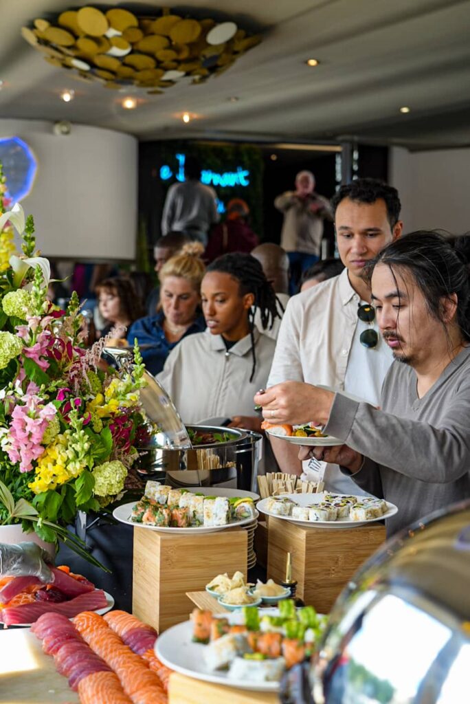Le chef y propose des ateliers culinaires à Paris en direct, où vous pourrez déguster des œufs préparés selon vos envies, des crêpes Suzette, ou encore du saumon gravelax. Le buffet comprend également une sélection de fromages (camembert, brie, chèvre), des salades fraîches comme le taboulé ou la salade de tomates avec billes de mozzarella, et même un atelier de pâtisserie où vous pourrez vous régaler de viennoiseries tout juste sorties du four.