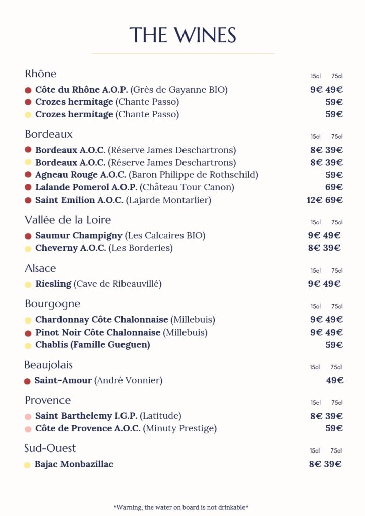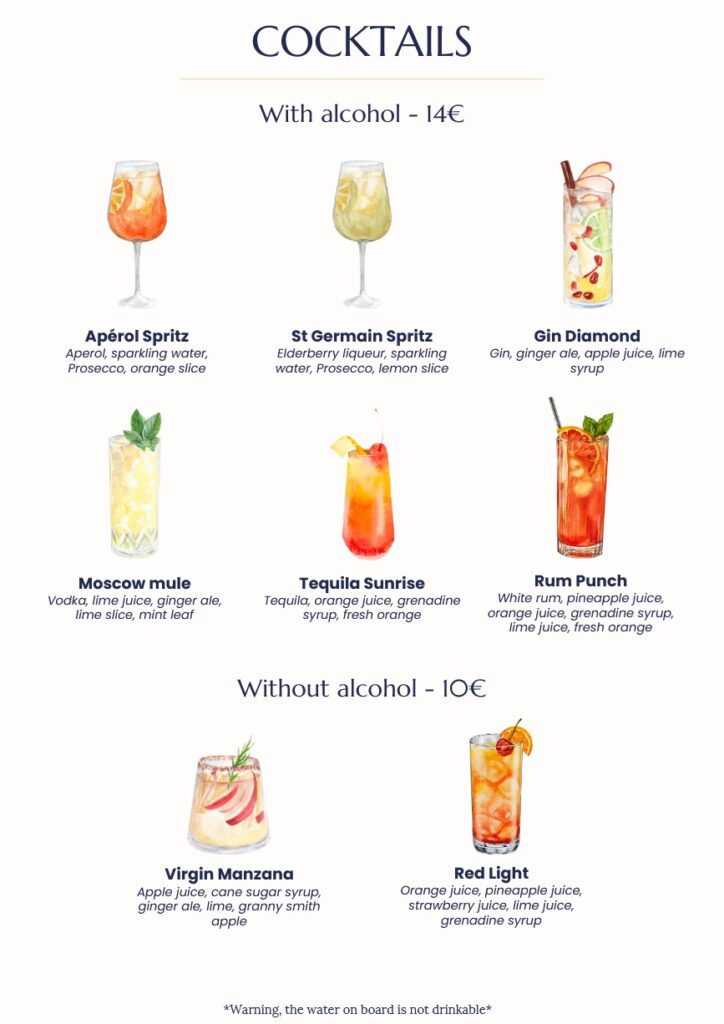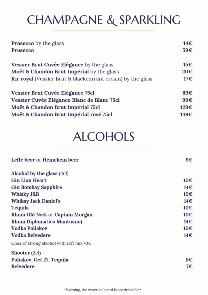 DRINKS INCLUDED IN THE €79 PACKAGE: