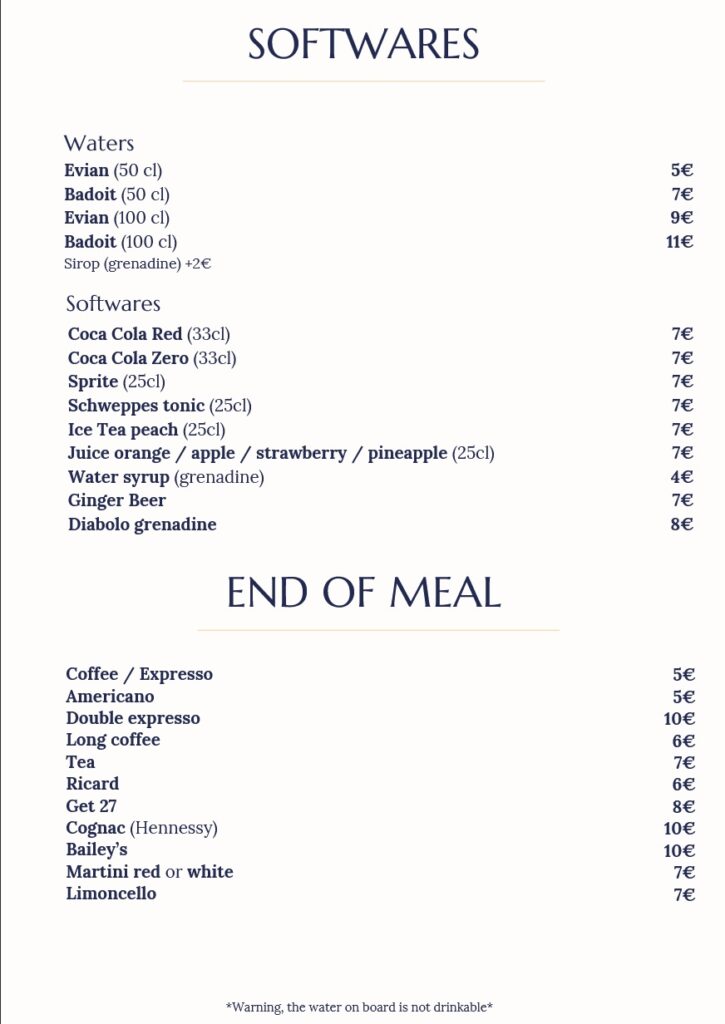 Brunch is available for €79 per adult, including the cruise, all buffets and culinary workshops, as well as drinks (unlimited hot drinks, fruit juice, and a bottle of water). For this price, you’ll have access to an all-you-can-eat buffet.