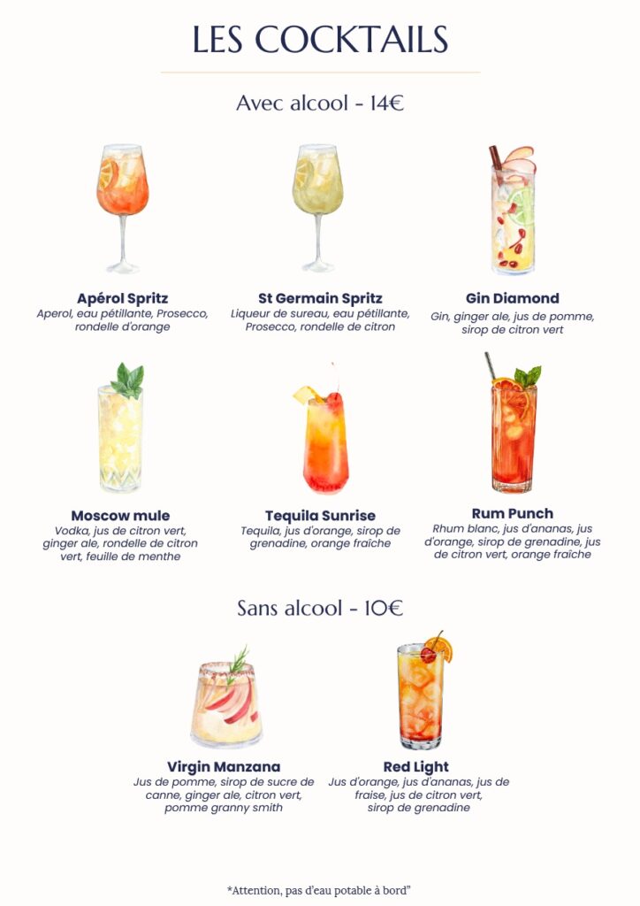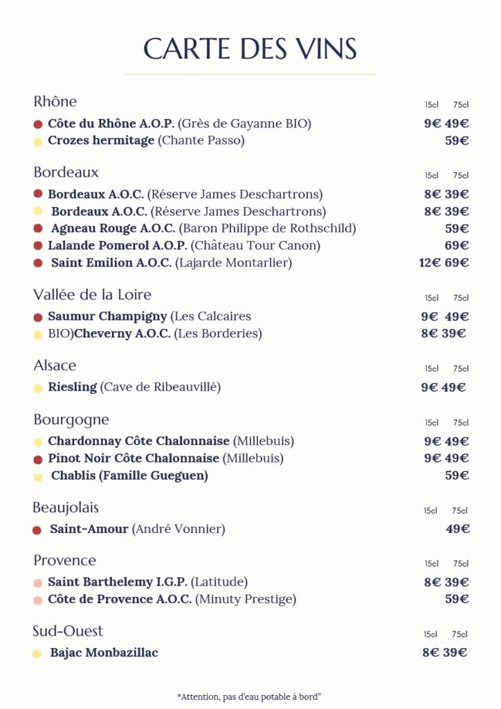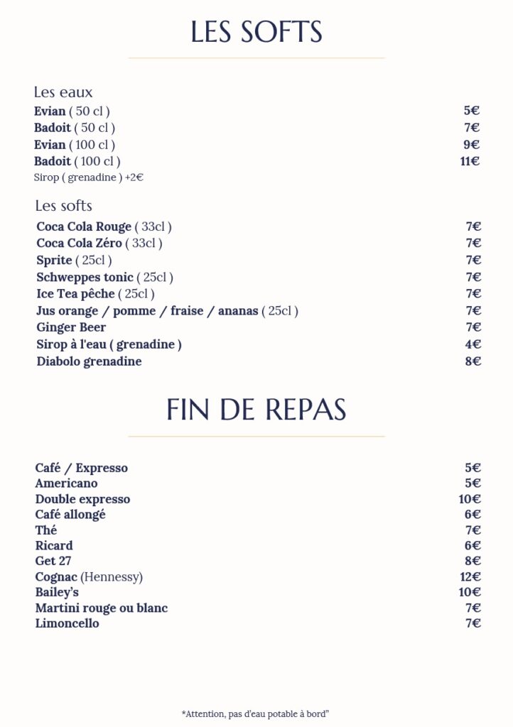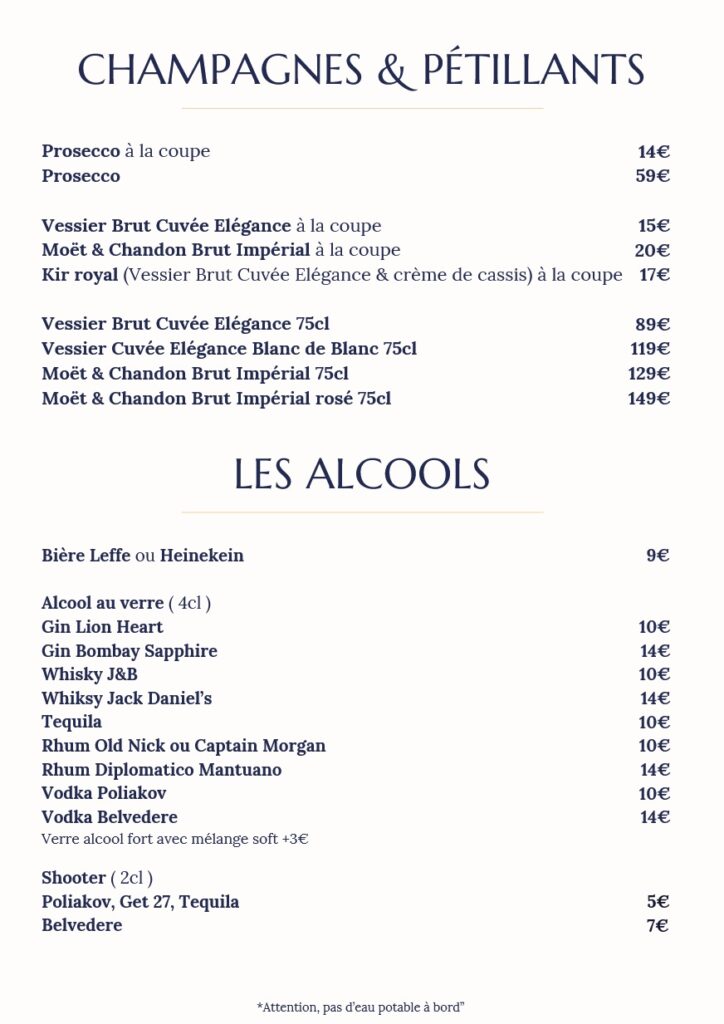 BOISSONS INCLUSES DANS LA FORMULE à 79€ :